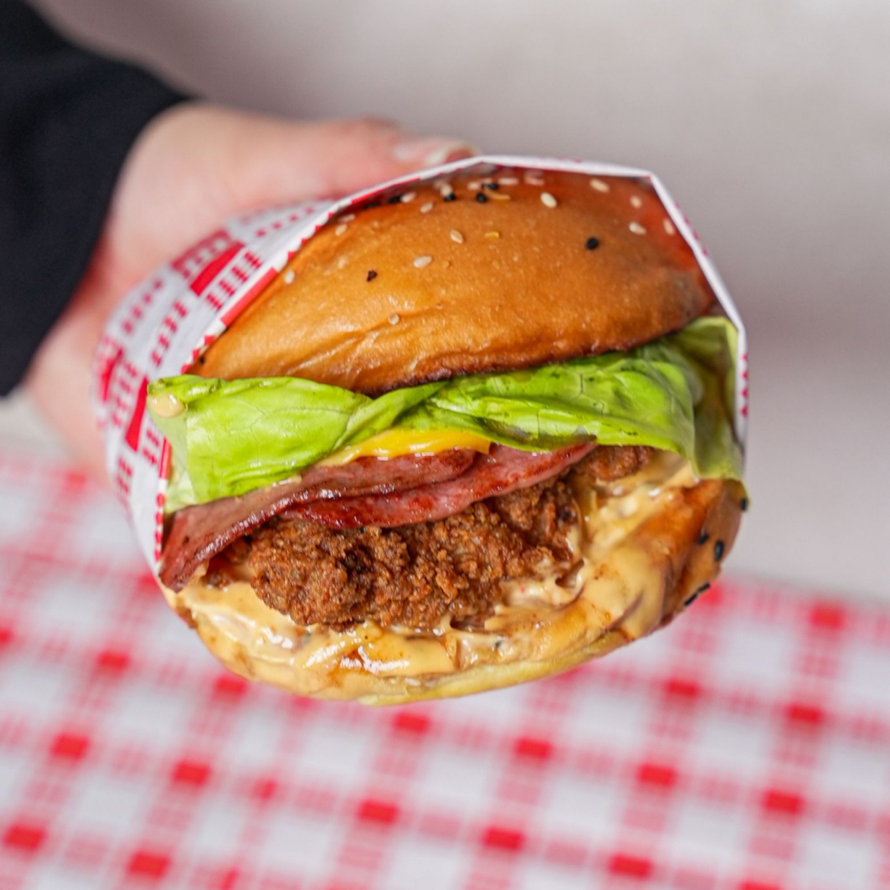 Thigh Fillet, Beef Rasher x2, American Cheese, Butter Lettuce, Onion, Chipotle Mayo & BBQ Sauce