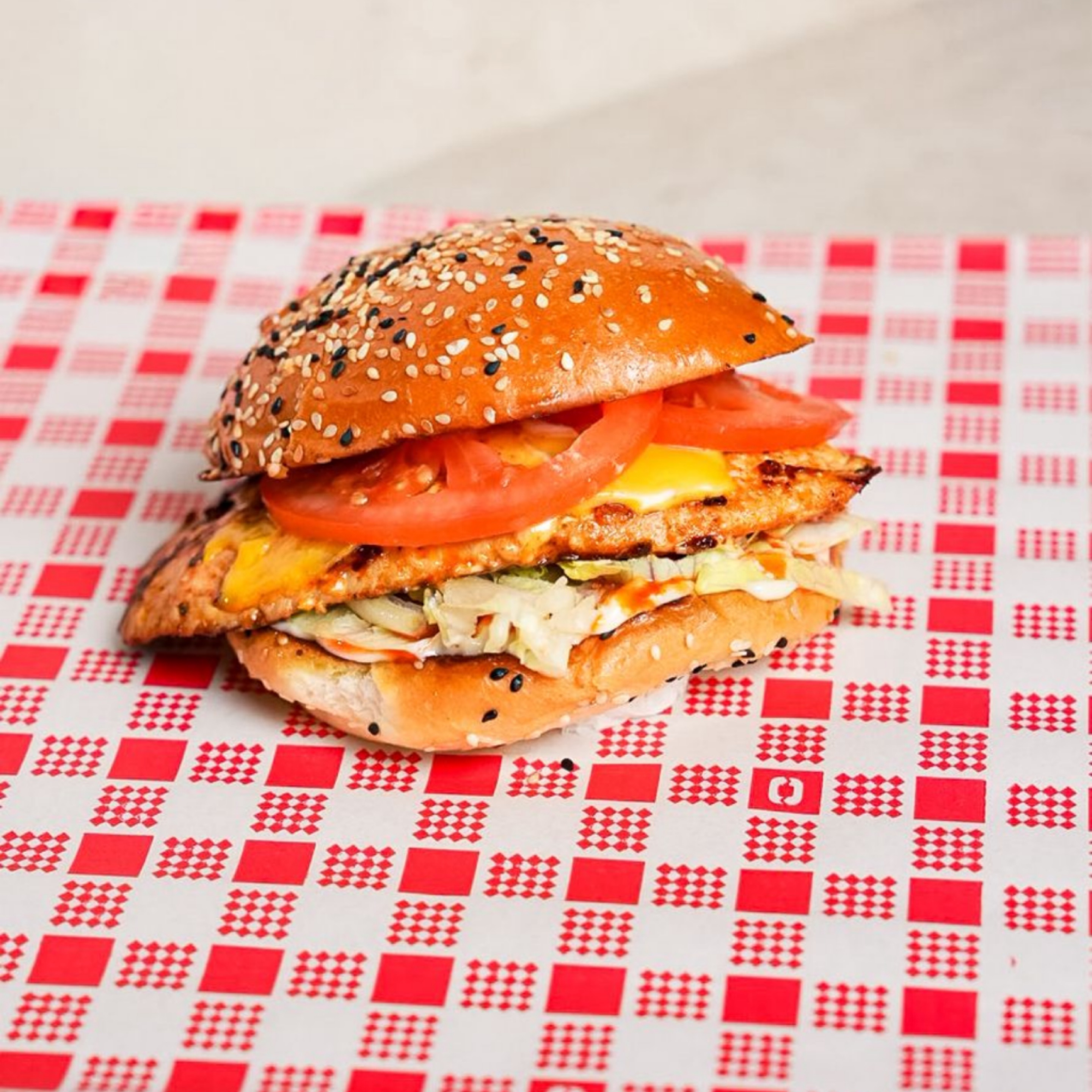 Grilled Chicken, American Cheese, Shredded Lettuce, Tomato, Mayo & Chilli