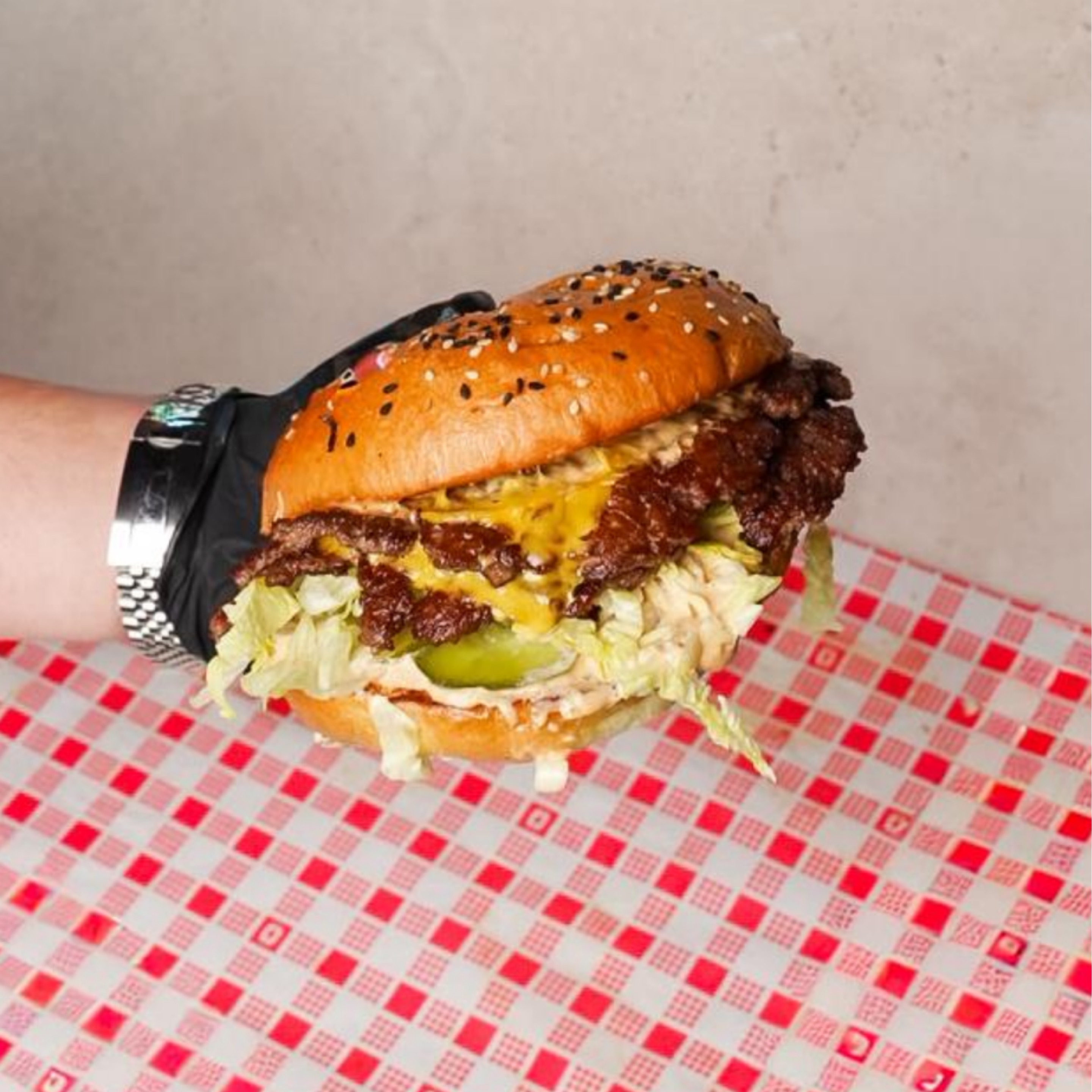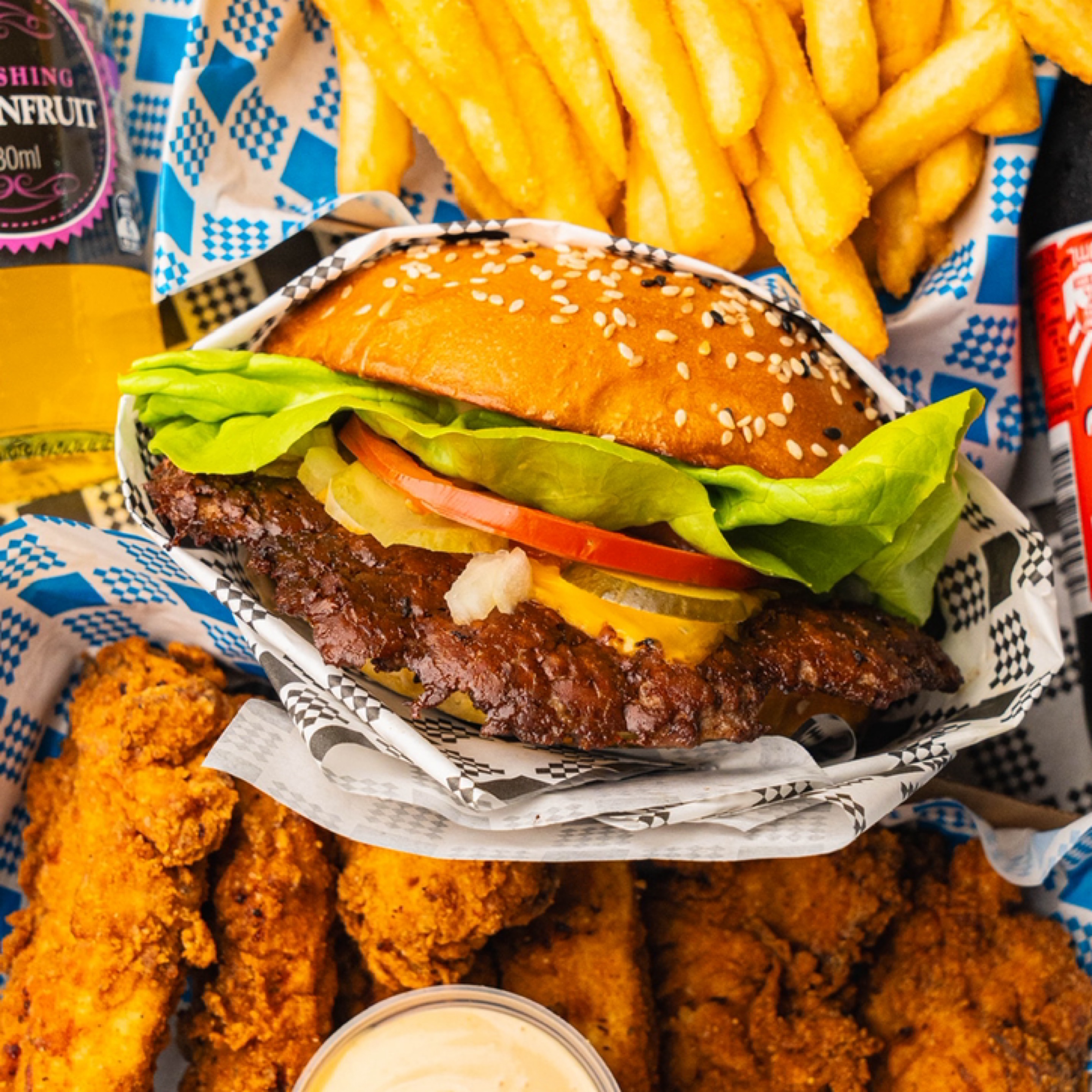Wagyu Beef x2, American Cheese x2, Shredded Lettuce, Onion, Pickles & BB Sauce